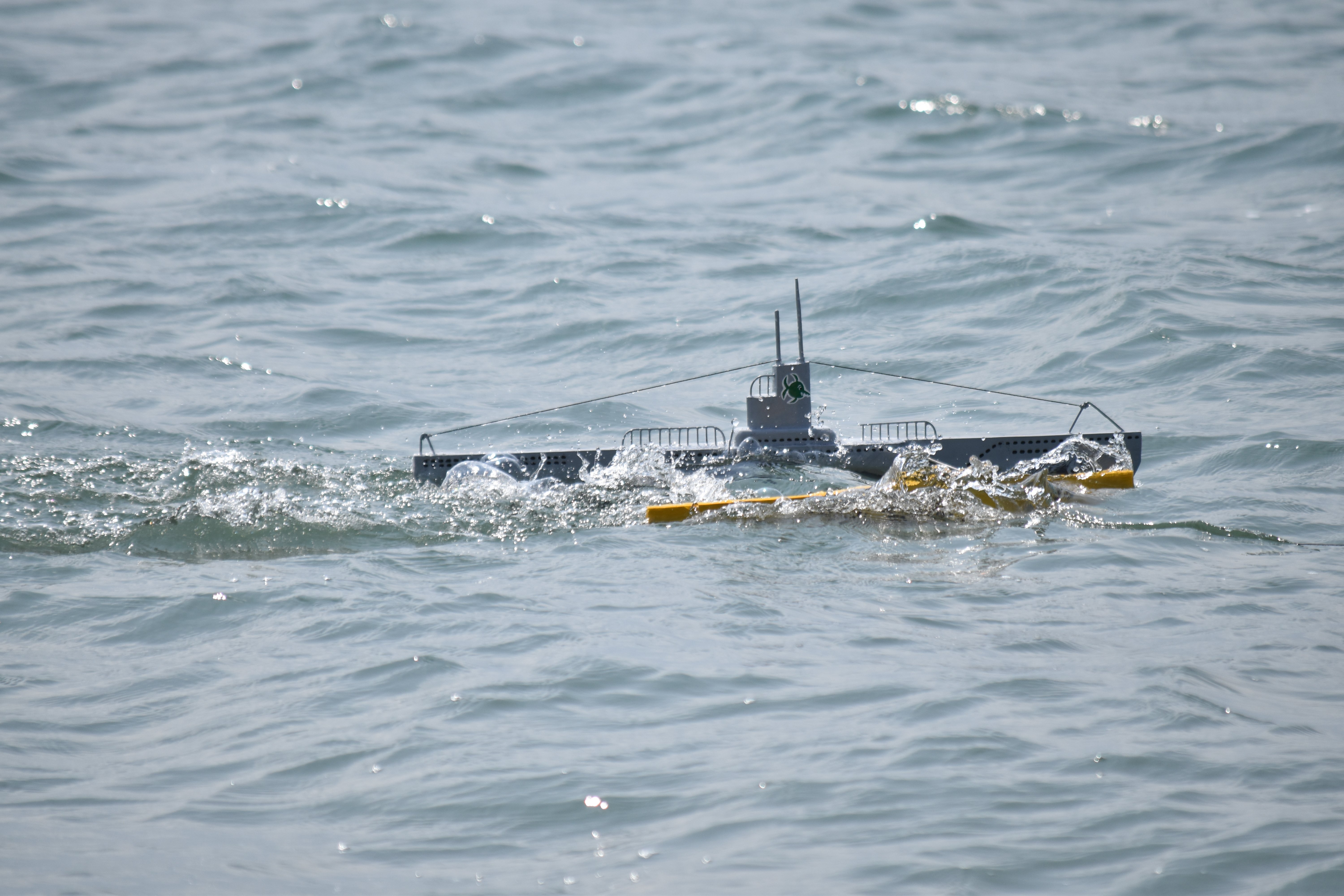 航行させてみると、波を切って進む姿がなかなか迫力があって、面白いものでした。こんな風にバルキーノは自由に改造して遊ぶことも可能です。腕に覚えのあるモデラーさんは、ぜひ凝りに凝った凄いバルキーノを作ってみてください。